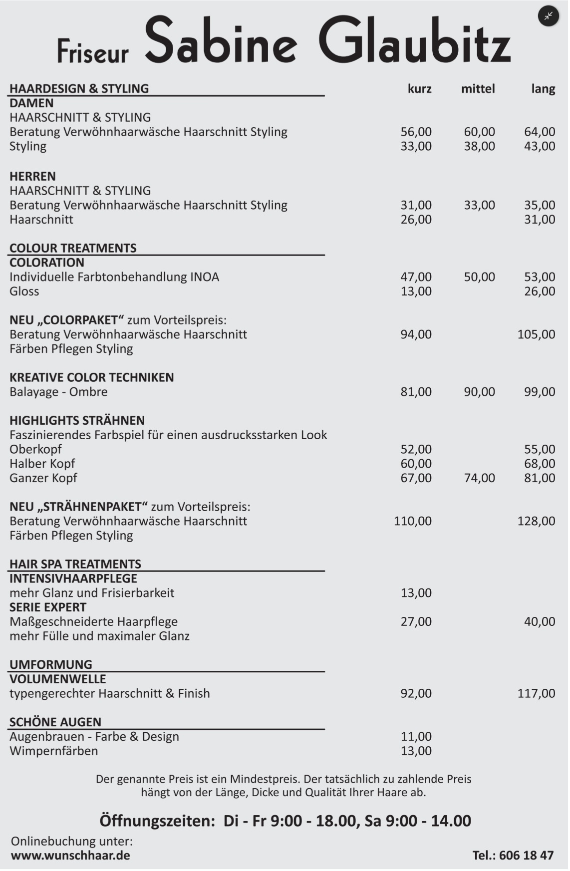 - Samstag: 09:00 - 14:00 Uhr